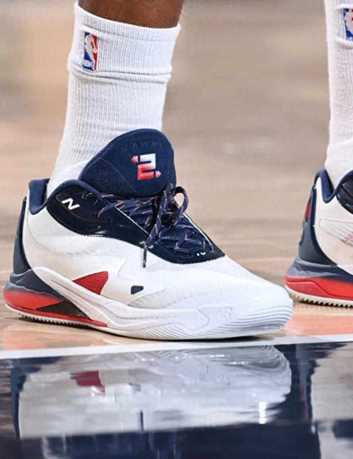 值得一提的是,比赛中伦纳德脚蹬New Balance Kawhi4 PE战靴。这双专属配色的战靴,不仅在外观上独具匠心、别具一格,其性能更是十分卓越。从专业运动装备的视角来看,New Balance Kawhi4 PE采用了先进的科技和优质的材料,能够为球员提供良好的支撑与稳定性。在比赛过程中,伦纳德频繁地进行变向、突破和急停等动作,这双战靴都能完美地适应他的运动需求,助力他在球场上淋漓尽致地发挥出最佳水平。从商业和文化的维度而言,球星与品牌的合作款战靴往往具有极高的收藏价值和广泛的市场影响力。伦纳德作为联盟中的顶级球星,他上脚这双New Balance Kawhi4 PE,无疑会吸引众多球迷和鞋迷的目光,进一步提升这款战靴的知名度和销量。